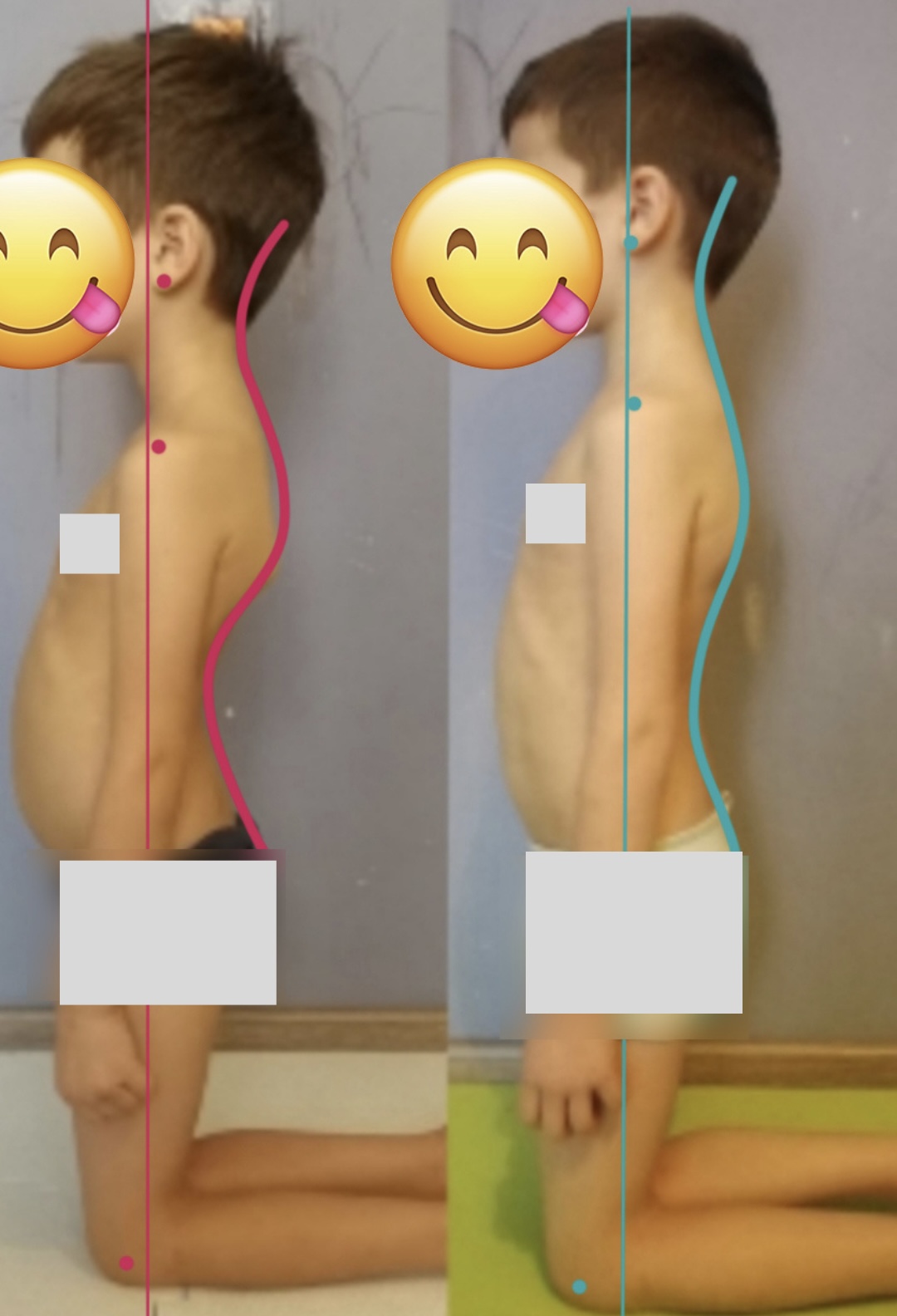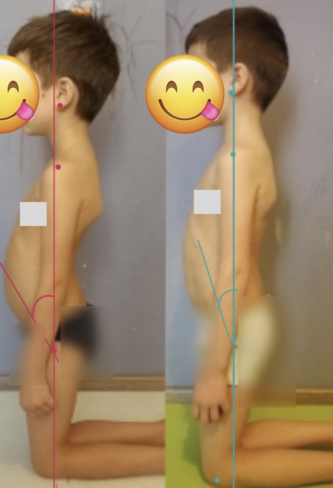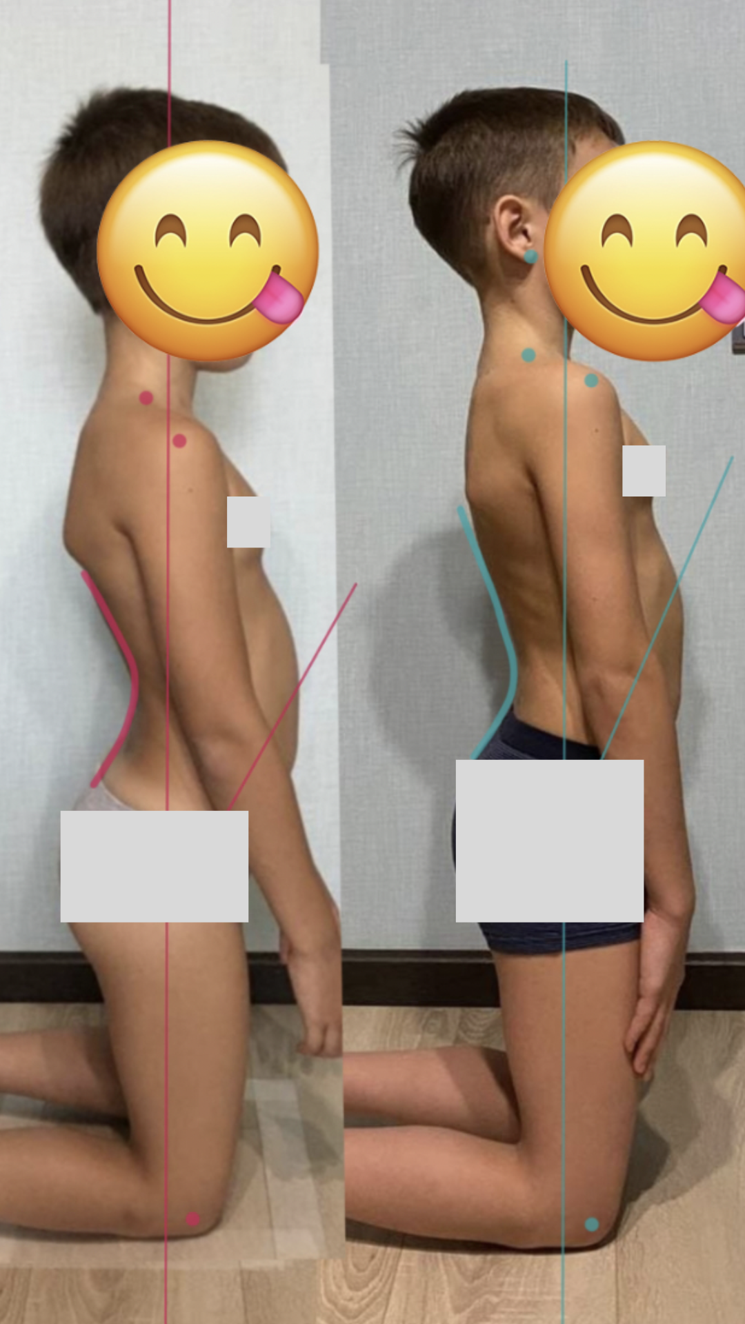 Конечно, прошло еще мало времени и полученный результат не окончательный, а промежуточный. Но вы можете увидеть, как здорово изменился баланс тела мальчика благодаря тренировкам!